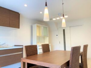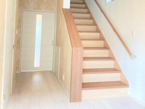 料理がお上手な施主様のお宅です。知人を招いて料理をふるまえるよう、広く明るいリビングにしたいとのご希望でした。また、洗面・浴室・脱衣所を独立させたいとのご要望もありましたので、間取りや階段の位置を大幅に変更し、1階はLDKを広くとり、浴室等も独立させて設計しました。