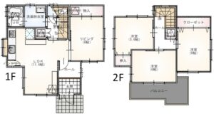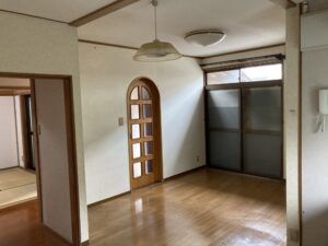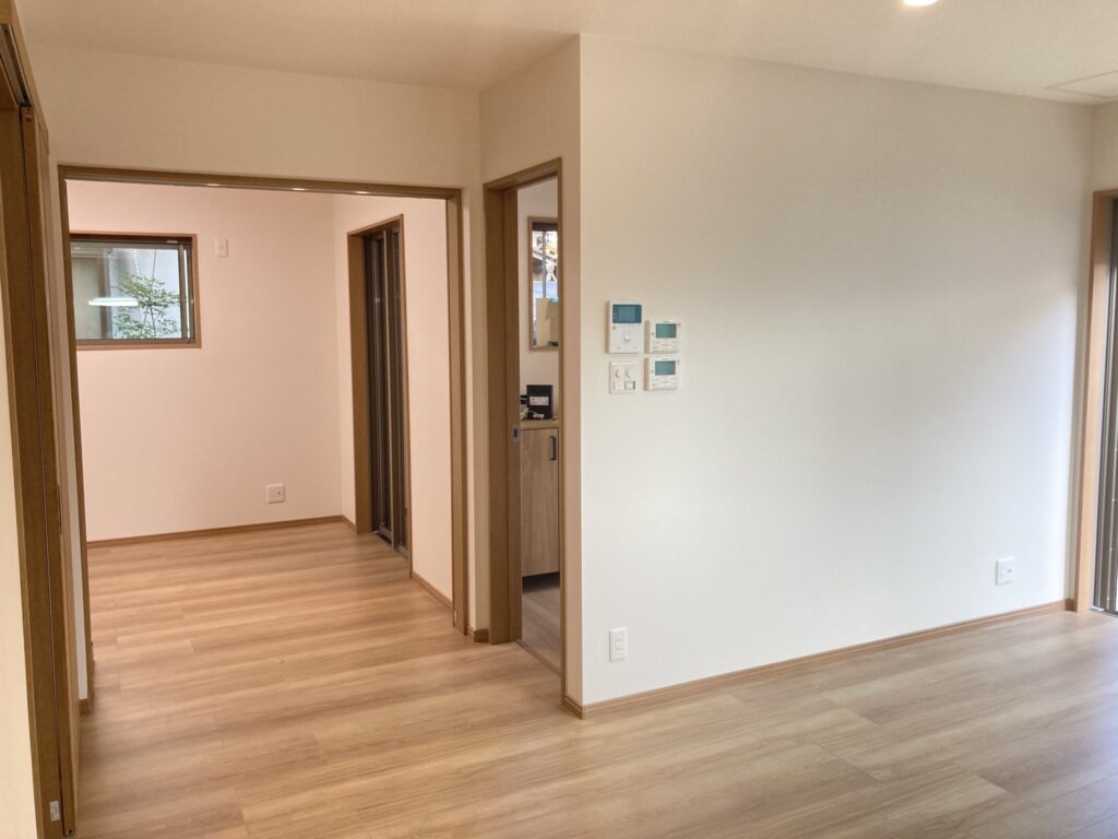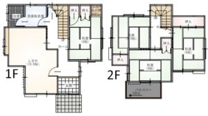 間取りは大きくは変わっていませんが、既存1Fの廊下部分を無くすことでLDKを一体的に利用し、可動間仕切を引込戸を利用することで独立した部屋としても確保できるようにしました。