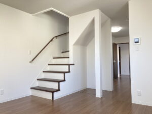 上空に高圧線が通っているため利用できる面積が限られた土地です。限られた条件下で最も効率的に利用でき、明るく快適な住空間となるように設計しました。